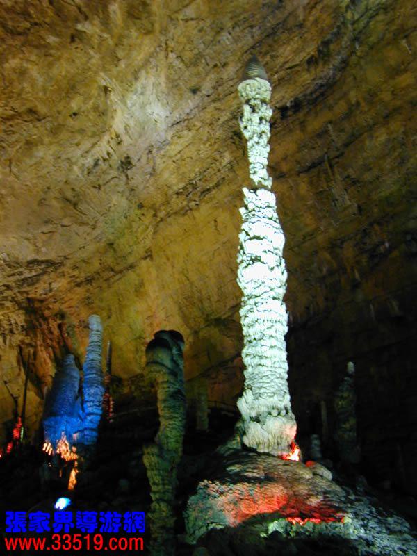 (定海神針)這是黃龍洞的標(biāo)志景點,全高19.2米,圍徑40公分,為黃龍洞最高石筍,兩頭粗中間細,最細處直徑只有10厘米,如果按專家測定的黃龍洞石筍的年平均生長速度僅0.1毫米,那么依此推算,“定海神針”生長發(fā)育至今已有20萬年歷史了,而且仍在繼續(xù)生長,如果再長6萬年,再長6米,就可直抵穹頂而“頂天立地”了!為了更好地保護這一標(biāo)志景點,黃龍洞景區(qū)管理部門特地為“定海神針”買下一億元巨額保險,創(chuàng)全國為世界自然資源性遺產(chǎn)買保險之先河......