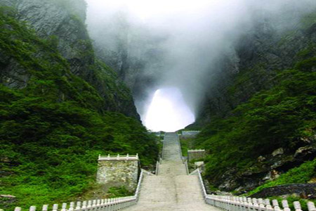 早上8:00長(zhǎng)沙火車站集合后,經(jīng)長(zhǎng)張高速往張家界市,赴天門山國(guó)家森林公園旅游,乘坐“世界第一長(zhǎng)高山客運(yùn)索道(全長(zhǎng)7455米,高差1279米)”, 體驗(yàn)騰云飛翔的刺激震撼,28分鐘到天門山頂:登張家界之巔云夢(mèng)仙頂,俯瞰張家界全景,體驗(yàn)凌空獨(dú)尊的豪情, 游覽東線碧野瑤臺(tái)景區(qū),觀賞奇妙美麗的盆景花園,游覽盆景石區(qū)、天門翻水、北俯視天門、靈泉、靈泉院,登云夢(mèng)仙頂,體驗(yàn)“云生腳下、奇峰盡覽、萬(wàn)象目中”的豪邁感覺。游西線體驗(yàn)鬼谷棧道的驚心動(dòng)魄,在峭壁云端縱情尖叫。返凌霄臺(tái)欣賞城區(qū)風(fēng)光、領(lǐng)略山水長(zhǎng)卷的磅礴氣勢(shì),攀登 999 級(jí)臺(tái)階的上天梯,抵達(dá)天門洞底,感受造化神奇,盡情欣賞天門洞內(nèi)外的壯麗景色。至天門洞體驗(yàn)自然造化的神奇和震撼沖擊。乘觀光汽車體驗(yàn)99彎通天大道奇絕,沿途觀賞七級(jí)瀑布、金龜馱元寶、將軍峰、箭桿峰等景觀,天門山氣象獨(dú)特,門洞奇絕,植被豐富,歷史悠久,是歷史文化與佛道文化的神秘載體,是自然景觀與人文景觀的完美結(jié)合,故也是蜜月度假必游之地。