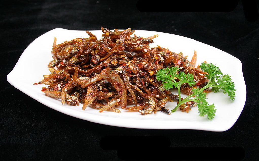 原料為小魚蝦,其中以“青皮嫩”為最佳,肉多味美,魚蝦捕撈上趁新鮮將其沖洗干凈,瀝干水,均勻地攤在熱鍋子里(鍋上刷一層油使它們不粘鍋)。半小時左右,這些魚蝦就已經(jīng)焙干,一側(cè)焦黃,透出薰香,再剔去肚腸,炒豆豉辣椒或?qū)⑶嘟非嗨馇屑毻淳?,味道絕美。