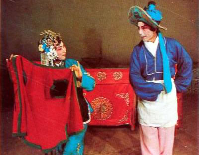 蚌殼用蔑扎骨架,蒙布或紙,外繪蚌紋,以紅綠綢鑲邊,內(nèi)貼水銀碎鏡片。由一旦一丑表演。旦扮蚌殼精,身背蚌殼,表演“扯四角”、“開蚌”、“戲水”、“整容”、“照鏡”、“戲翁”等動作,含蓄逗趣,活潑可愛。丑扮魚翁,手持撒網(wǎng),表演“踩水”、“窺蚌”、“戲蚌”等動作,詼諧風(fēng)趣。常令人捧腹。伴奏以弦樂為主,伴以竹笛,幽雅悅耳。