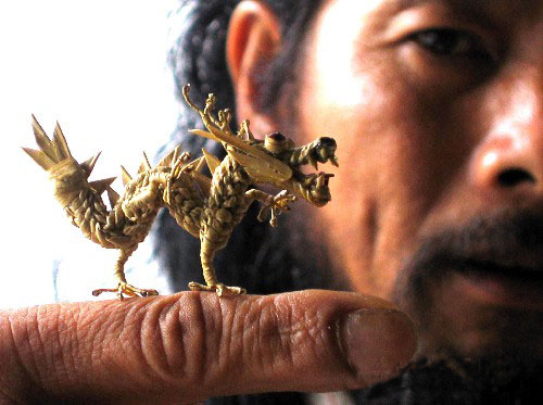 長沙地區(qū)的傳統(tǒng)工藝品,系用棕櫚葉編成的各種動物,種類很多,如鳥、蟲、魚、蝦、鶴、蛇等,形象逼真,栩栩如生。曾參加德國萊比錫世界博覽會,人們贊嘆它“不可思議”,法國藝術(shù)館特意收購珍藏。棕櫚為常綠喬木,望城縣湘江兩岸都有種植,藝人們采集棕葉,編織成各種小動物,成為“江南一絕”。