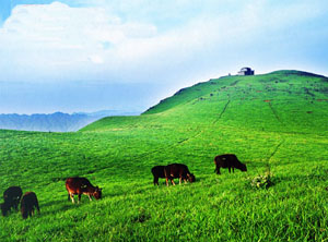 比主峰低百米處是面積達2000余畝的平坦草原,是放牧開發(fā)養(yǎng)殖業(yè)的最好場所。