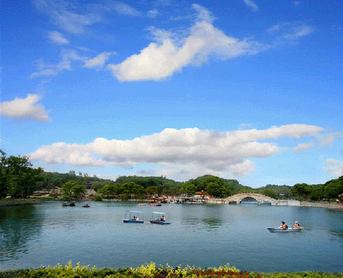 君山又是一個秀麗的綠洲,島上的草木自古就很聞名?,F(xiàn)在每逢初春漲水之前,湖灘上綠草綿綿,野花斑斕,頗具草原風(fēng)味;一到夏天水漲,葦葉青青,水鳥出沒,又是一派蘆蕩景象。君山有各種各樣的樹,多達200余種,各種花卉,四時怒放,真是青碧連云,香飄全島。叢綠之中,尤以竹林、茶園最富特色。