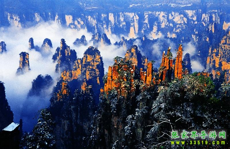 索溪峪風(fēng)景區(qū)索溪峪,西南緊連張家界,西北毗鄰天子山,面積一百四十七平方公里,有景點二百多處。索溪峪山、水、洞自成一體 ,奇峰起伏錯成趣;水,泉清瀑美,千姿百態(tài);洞,幽深神秘,其妙無比。那恍若仙境的地下宮殿黃龍洞,天然浮雕羅列、充滿詩情畫意的十里畫廊,碧波蕩漾的寶峰湖,充滿傳奇色彩的百仗峽及太虛幻境般的西海云霧,一剛一柔、形態(tài)風(fēng)格迥異的鴛鴦瀑.... 無不令人流連忘返。遠(yuǎn)在明代中葉,就有人在巖壁題詩贊曰: “高峽百丈洞云深,要識桃源此處尋。”