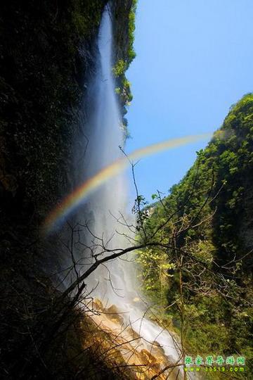 【神泉峽】有請(qǐng)各位朋友注意,我們行走到這里,您會(huì)發(fā)現(xiàn),峽谷在這一段猛然一下子收縮了,變得越來越窄了。這段很窄的峽谷叫做神泉峽,總長(zhǎng)300余米。在神泉峽,我們要穿過兩處水簾瀑,請(qǐng)大家保護(hù)好自己的攝像機(jī)、照相機(jī)等貴重物品,以免打濕受損。同時(shí)還要注意腳下,慢慢行走,因?yàn)檫@一段的木板棧道很滑。