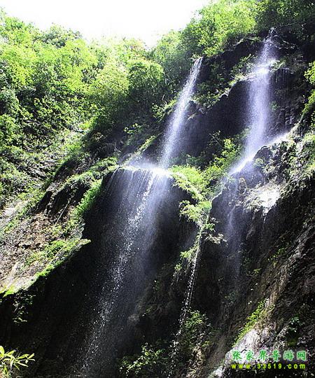 【珍珠墻】過了神泉橋,請(qǐng)大家留步,做一個(gè)短暫的停留。請(qǐng)大家看,我們的面前,石壁之上,生長(zhǎng)著很多植物,很多草類,山上的泉水沿著石壁,以均勻的流量漫流下來,在這些草葉上、枝枝蔓蔓上形成了一個(gè)個(gè)潔白晶瑩的水珠,大家看像不像珍珠?游客朋友們都將這堵石壁叫做珍珠墻,掛滿珍珠的石墻啊。