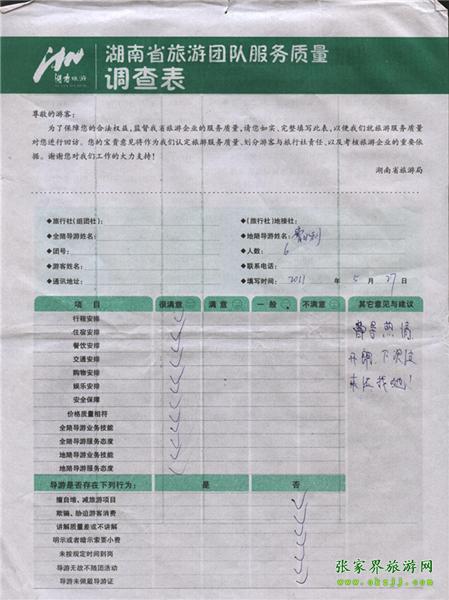 2011年5月27日胡先生一行6人旅游質(zhì)量反饋:導(dǎo)游熱情開朗,下次過來還找她