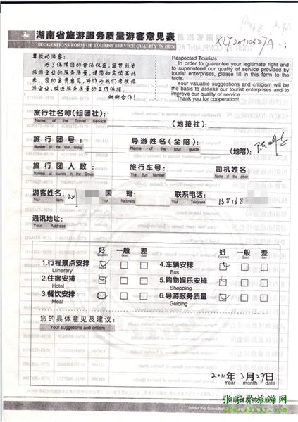 - 2011年10月26日張小姐一行18人旅游質(zhì)量反饋 [10482]