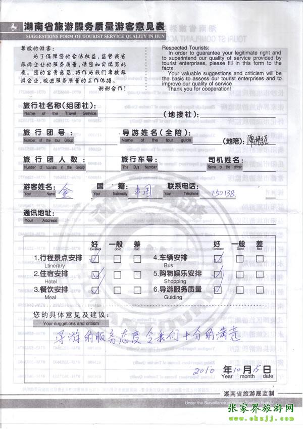 - 游客夏先生為表揚導游李姣姣寫來表揚信致我張家界... [14811]