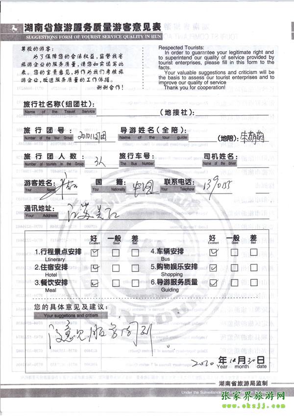 - 游客夏先生為表揚導(dǎo)游李姣姣寫來表揚信致我張家界... [14811]