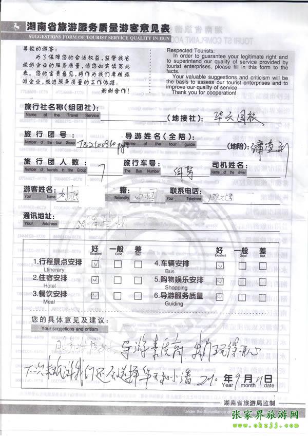 - 游客夏先生為表揚導(dǎo)游李姣姣寫來表揚信致我張家界... [14811]
