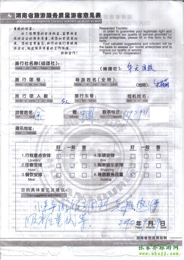 - 游客夏先生為表揚導游李姣姣寫來表揚信致我張家界... [14811]
