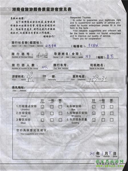 - 2011年10月26日張小姐一行18人旅游質量反饋 [10482]