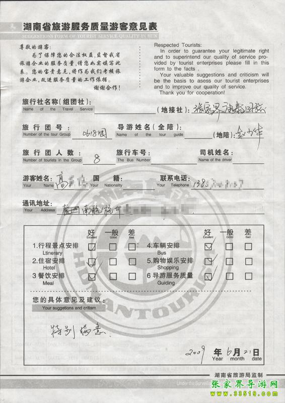 - 游客夏先生為表揚導(dǎo)游李姣姣寫來表揚信致我張家界... [14811]