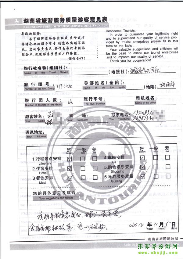 2010年11月5日陳小姐旅游質(zhì)量反饋
