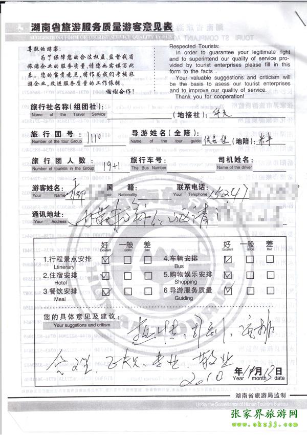 - 2011年10月26日張小姐一行18人旅游質(zhì)量反饋 [10482]