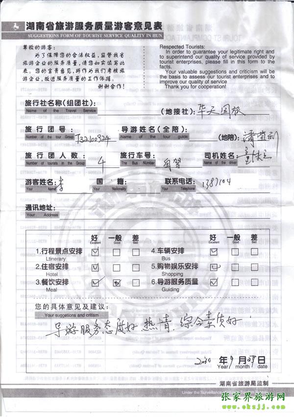 - 游客夏先生為表?yè)P(yáng)導(dǎo)游李姣姣寫(xiě)來(lái)表?yè)P(yáng)信致我張家界... [14811]