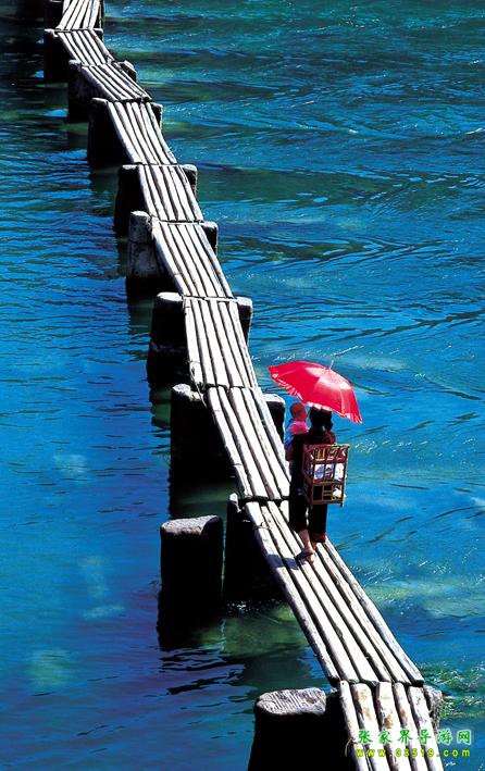 還有那鳳凰人在江邊用木板洗衣服時(shí)的情形也是難忘的。小住幾天,都會(huì)發(fā)現(xiàn)從一早到一晚都有當(dāng)?shù)氐木用裨阢吷舷匆路?,他們?nèi)巳硕寄靡豢焯刂颇景澹脕?lái)敲打衣服,特別在早上八、九點(diǎn)的時(shí)候,江兩岸的邊上、木橋的兩邊橋墩下,都蹲滿許多的人,當(dāng)然婦女、老人居多,在那“啪啪”的洗衣服,此起彼伏,甚有節(jié)奏。時(shí)而有游人用照相機(jī)對(duì)其拍照,可他們似乎也習(xí)以為常了,毫不理會(huì),特別在傍晚還會(huì)有脫得精光的小孩在岸邊的洗衣人周?chē)嫠?,奇怪的是,他們并不害羞,也不害怕游人的鏡頭和目光,我想大城市里的孩子就少了這份的無(wú)機(jī)心的單純了。在這里生活無(wú)疑自然舒適淳樸的,我想他們的生活習(xí)慣從來(lái)就是如此的,沒(méi)有因我們游客的到來(lái)而有太大該變。
