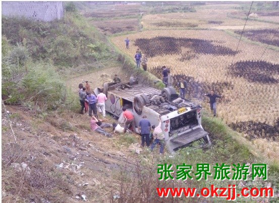 丈龍鼻嘴發(fā)生交通事故 09年9月16號(hào)下午,到古丈經(jīng)過(guò)的時(shí)候發(fā)生了一起重大交通事故.交警,消防,120都到達(dá)了,正在 展開救援,目前2死,N傷. 是一輛黑色吉普車緊急調(diào)頭,張家界的旅游大巴車速過(guò)快,沒剎住車,先是撞到路邊 的路桿,之后從變壓器旁邊沖了下去.! 這臺(tái)張家界旅游車(湘GY1133)在經(jīng)過(guò)古丈境內(nèi)時(shí)發(fā)生翻車事故,目前已經(jīng)造成2人死亡,多人受傷, 尚不知道出事車上導(dǎo)游和司機(jī)生死情況,我們將繼續(xù)關(guān)注、提醒各位導(dǎo)游,一定要提醒師傅注意車速,安全行 車,不可因?yàn)橐晃囤s時(shí)間忽略安全.